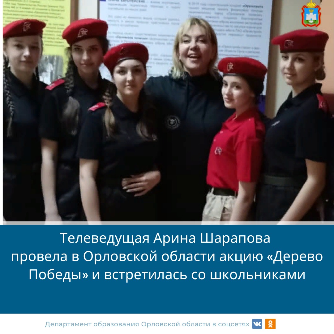 Телеведущая, общественный деятель и руководитель собственной школы АНО «Артмедиаобразование» Арина Шарапова 11 апреля встретилась с наиболее активными участниками экологического проекта «Экология. Культура. Общество» из г. Дмитровска Орловской области и высадила саженцы барбариса в рамках патриотической акции «Дерево Победы» около братского захоронения у школы в селе Ильинское Хотынецкого района.