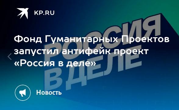 Фонд Гуманитарных Проектов запустил антифейк проект «Россия в деле»