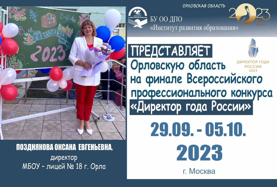 Орловскую область на конкурсе представляет Позднякова Оксана Евгеньевна, директор лицея №18.