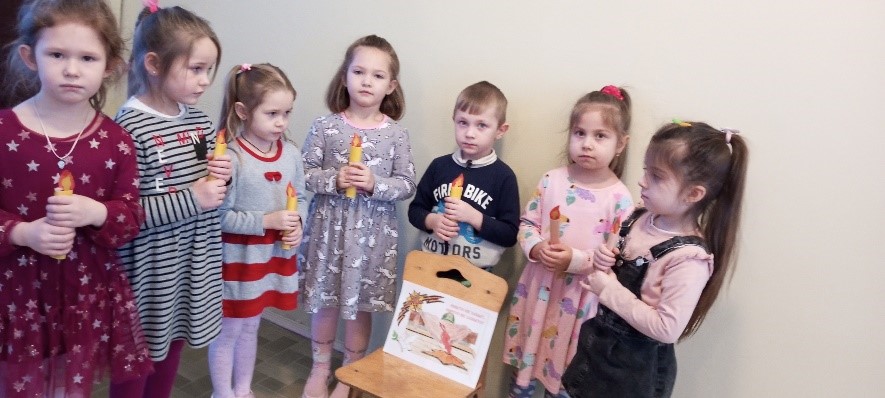30 января воспитанники старшей и разновозрастной групп приняли участие в акции «Свеча памяти», приуроченной международному дню памяти жертв Холокоста. Эта памятная дата призвана напомнить о наиболее последовательном геноциде в мировой истории. Всего в годы войны на оккупированных нацистской Германией территориях, было истреблено около 20 млн человек, из которых примерно 6 млн- евреи, которые уничтожались ввиду этнической принадлежности. Дети разновозрастной группы посмотрели презентацию «День памяти жертв Холокоста», после просмотра которой, зажгли 6 свечей в память о 6 миллионах невинно загубленных еврейских жизней и почтили их память минутой молчания. Воспитатель старшей группы в доступной форме познакомил ребят с трагедией Холокоста, затем дети изготовили своими руками свечи памяти.