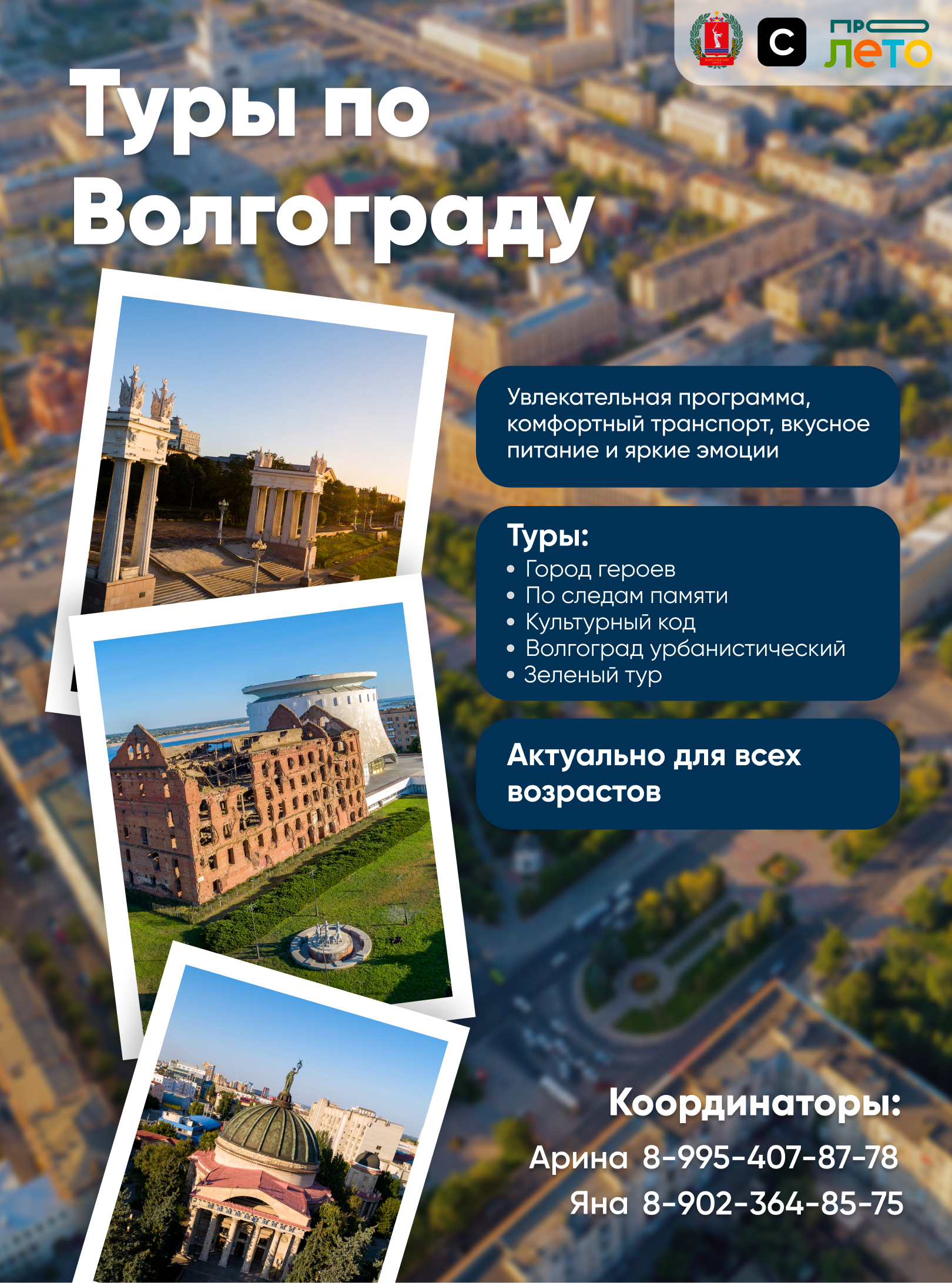 Ведущий туроператор Волгоградской области ООО «Пролето» и АНО «Институт развития городской среды и креативных индустрий «СРЕДА» приглашают вас к участию в экскурсионных турах по городу-герою Волгограду и Волгоградской области.