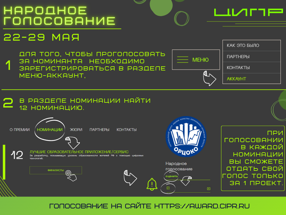 Для участия в голосовании необходимо перейти по ссылке https://award.cipr.ru.