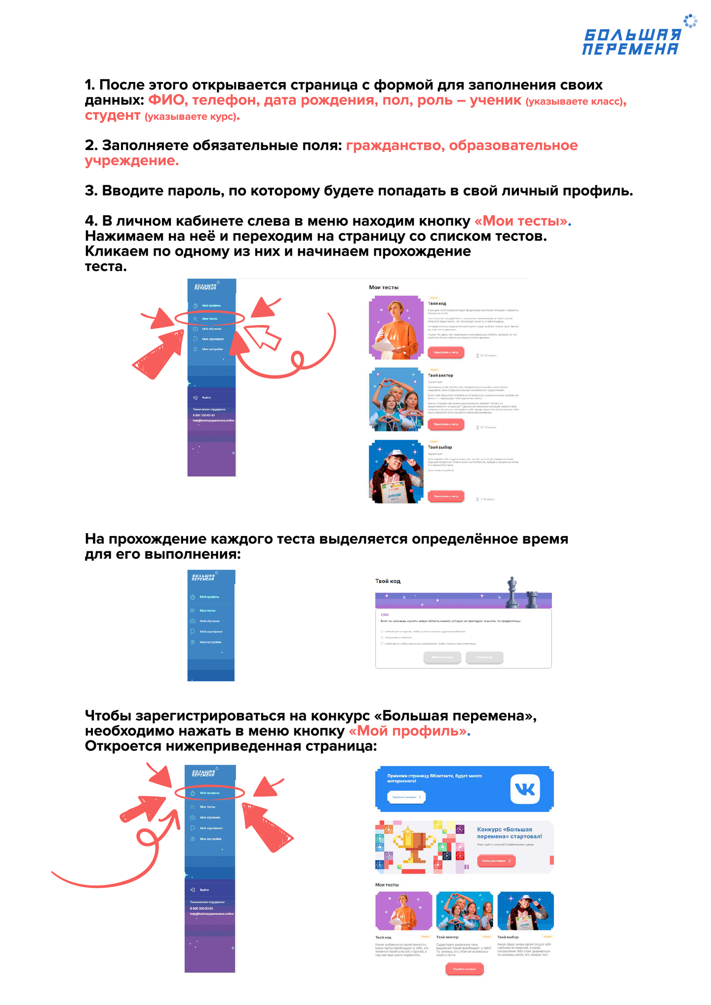 Инструкция по регистрации в конкурсе «Большая перемена»