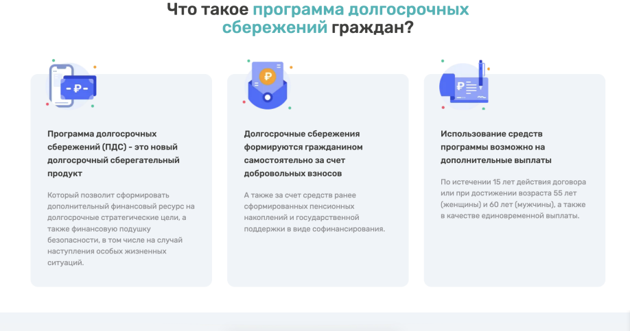 Подробнее о новом долгосрочном сберегательном продукте смотрите в карточках или на портале : https://xn--80apaohbc3aw9e.xn--p1ai/programma-dolgosrochnyh-sberezhenij-new/.