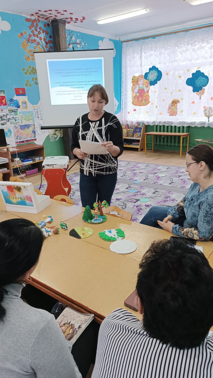 3 ноября на базе детского сада №1 прошло заседание РМО работников дошкольного образования, посвящённое теме "Дидактические игры как средство развития дошкольников" в виде семинара-практикума. Ведущим семинара была воспитатель Евсикова Маргарита Олеговна. Она рассказала о важности применения дидактических игр в развитии дошкольников, также на семинаре выступили: воспитатель Михеева Елена Николаевна с обзором экологических игр и музыкальный руководитель Николайчук Инга Анатольевна, поделившаяся опытом использования музыкальных дидактических игр вне музыкальных занятий. По завершении заседания, педагоги приняли участие в изготовлении дидактической игры своими руками.